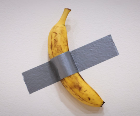 Comedian is a 2019 artwork by Italian artist Maurizio Cattelan. Created in an edition of three (with two artist’s proofs), it appears as a fresh banana affixed to a wall with duct tape. As a work of conceptual art, it consists of a certificate of authenticity with detailed diagrams and instructions for its proper display.
